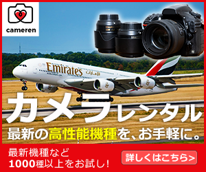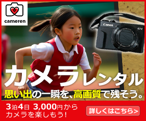 就労移行支援のバナー課題で作成したWebバナー。カメラレンタルサービスを運営する「CAMEREN」という架空の企業からの依頼という想定。